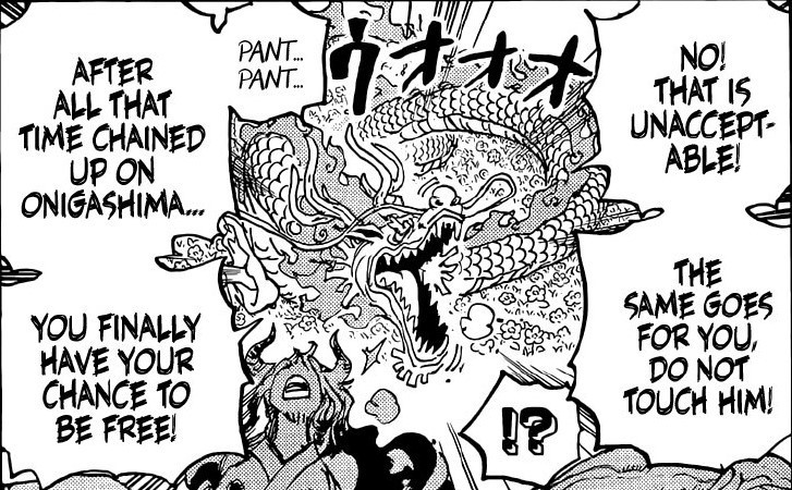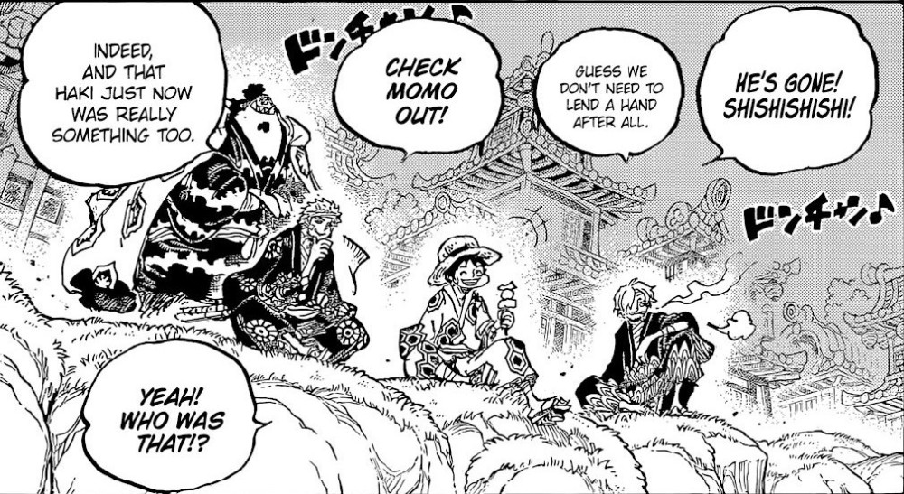 桃之助一口热息喷向绿牛,绿牛不敢相信,桃之助居然能使出凯多的招数。虽然这一下并没伤到绿牛,但大和与九侠都因此摆脱了绿牛的控制。路飞应该是看到了这一幕,才放弃了救援的念头,选择继续观战。