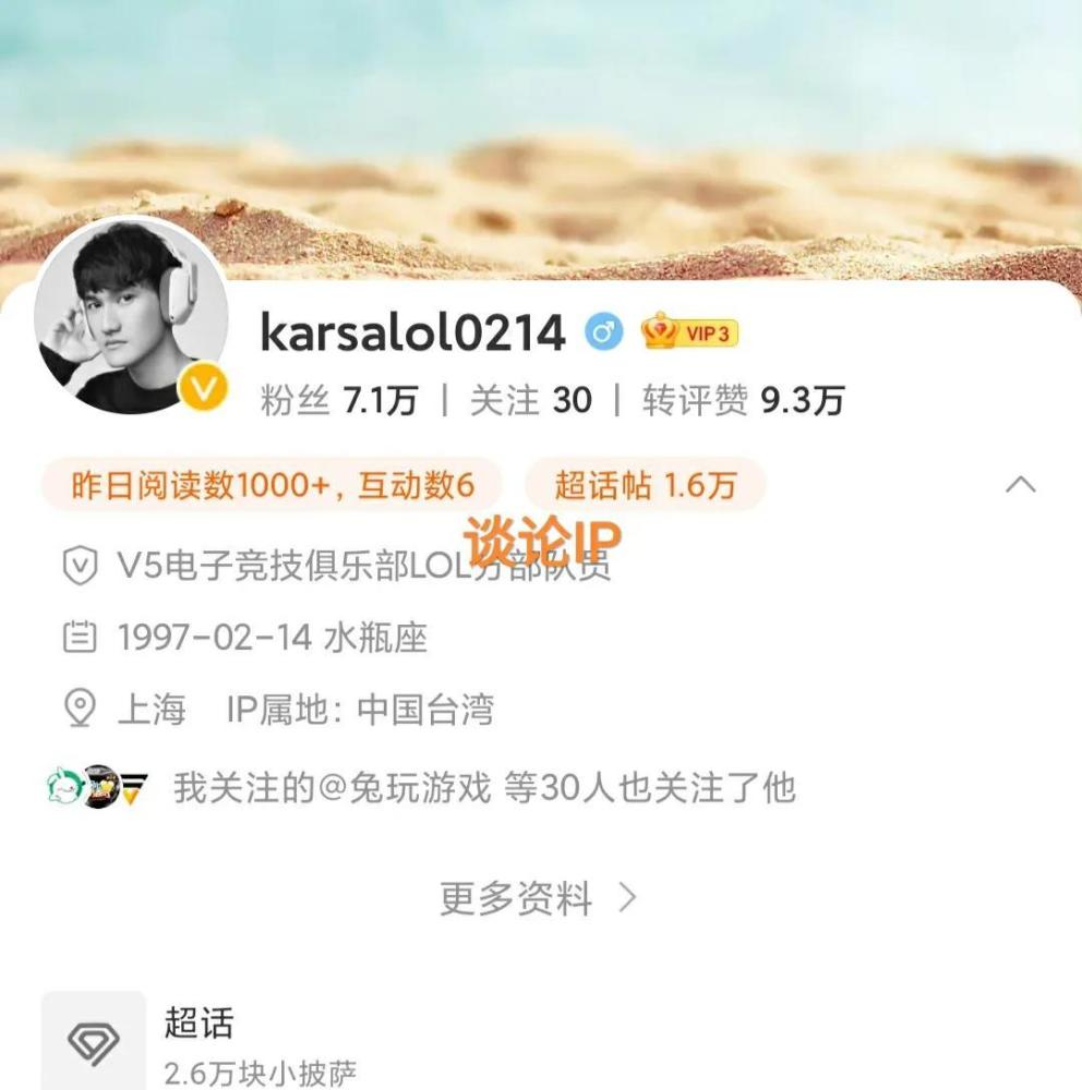 一些网友也是晒出了卡萨社交账号的IP地址,让很多玩家非常诧异的是,已经改成了湾湾,难道说现在的卡萨真的离队了吗?回到了lms赛区。好像是v5战队想要在夏季赛的时候和卡萨提前续约,但是卡萨并没有同意,所以V5战队就强制让他替补了。这波操作也是让很多的粉丝没想到的,毕竟现在这支战队还是有能力去争夺世界赛的名额的,如果这样下去的话,肯定是没有任何机会了,难道说战队续约,真的要比战队成绩更重要吗?