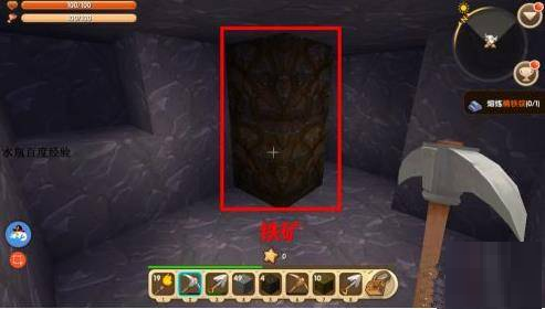 2、寻找铁矿。在迷你世界中寻找铁矿主要有以下两种技巧,选择某层地面一直往下挖,挖得比较深时可能会遇到铁块;寻找天然矿洞,里面一般有大量铁矿石和煤炭资源哦。