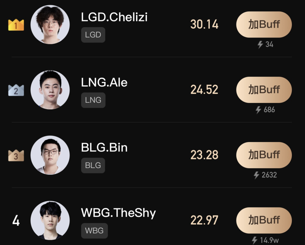 前四位是Kelper,Lwx,iBoy和Doggo。
