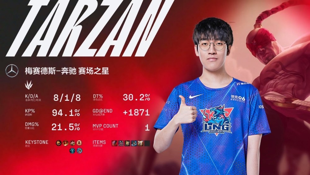 今年夏季赛LNG战队的比赛,其实很多赢下来的对局,Tarzan都打出了非常出色的表现,当然Doinb选手拿的MVP次数是最多的,只是说在LNG陷入困境后,Tarzan很多时候打出尽力局,团队也会输掉比赛。