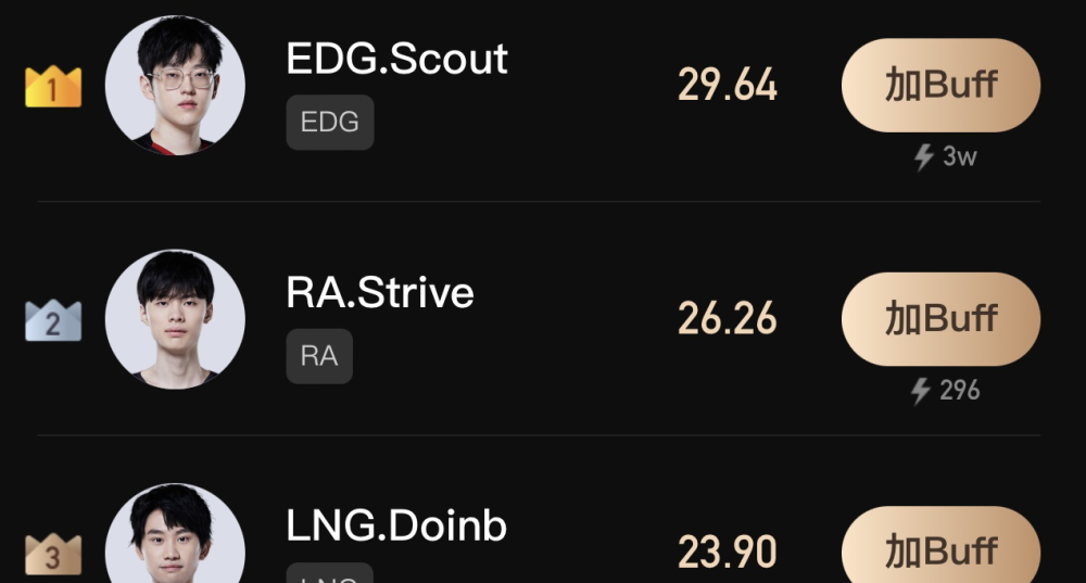 第一名是EDG的Scout,第二名是RA的Strive。