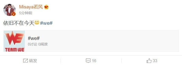 WE前中单选手若风已绷不住,直接在微博发言:依旧不在今天。