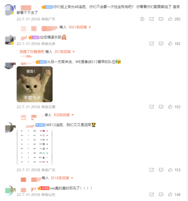 此战过后,随着WE的连败纪录越来越离谱,也引起了WE名宿若风、957以及粉丝网友们的一众热议。