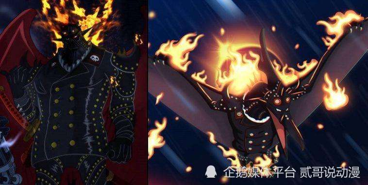 King的果实能力并不是像凯多那样的幻兽种果实能力,而是恐龙果实无齿翼龙的果实能力者,但是在三灾之中,能够拥有古代种的无齿翼龙果实能力,是不容小觑的,毕竟飞行果实的能力并不多,在空战中占据巨大优势,并且尾田还给他无齿翼龙的果实能力上附加了“火属性”攻击,但是这个火并非是果实能力自带,而是源于King自身种族的原因,而对于King的种族目前也没有太多情报分析,但是从他自身火属性一直不熄灭的特质来说,就可以知道绝非一般的种族,这个看后面会不会有揭示,让我们拭目以待。