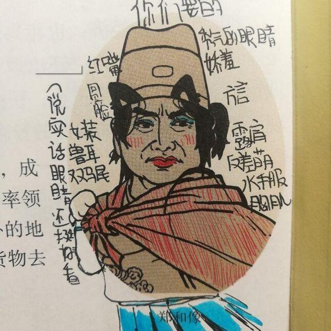关于鲁迅的课文,一般也有鲁迅的插画,有同学直接在真鲁迅旁边又画了一个鲁迅,这就成了真假鲁迅了,一般人真的看不出来哪个是真哪个是假的,这个绘画水平确实很高。