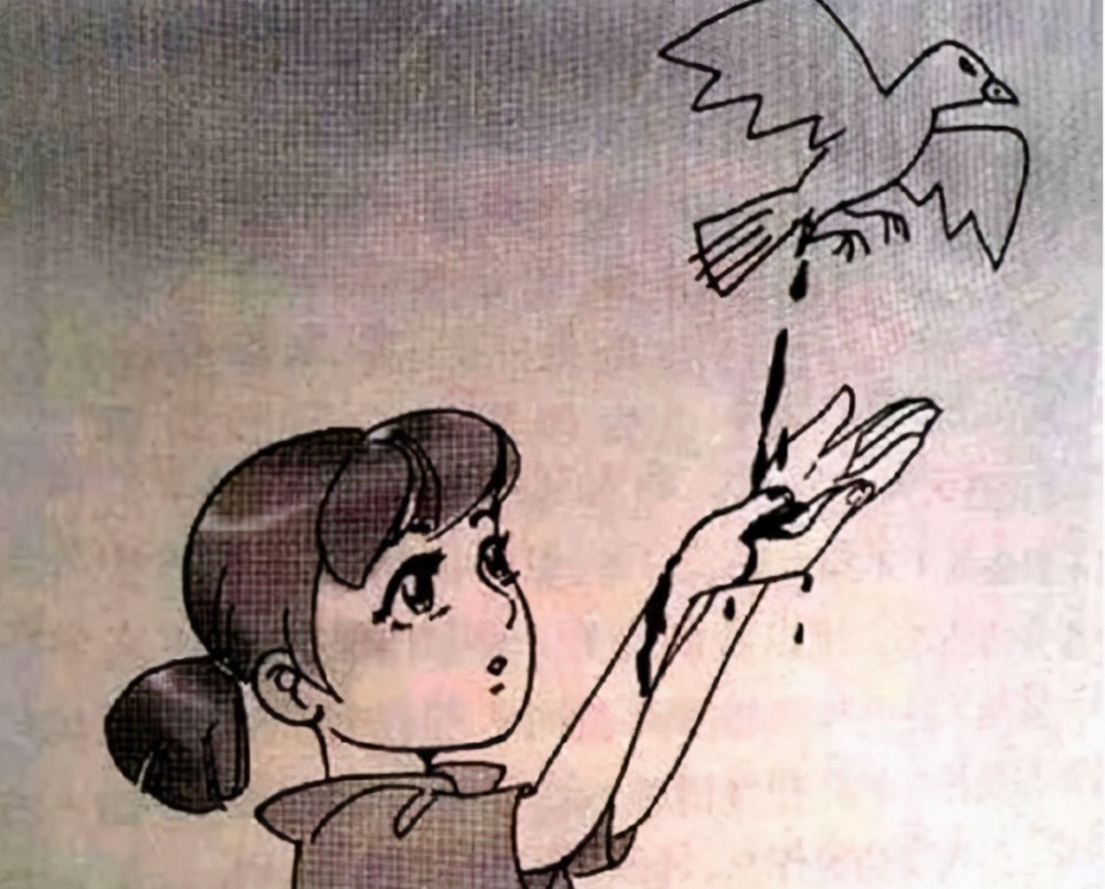这本来是一个非常和谐的画面,一个小女孩放飞和平鸽,这样的画面也是比较美好的,但通过学渣的涂鸦后,整个画风就变了,让人难以接受。