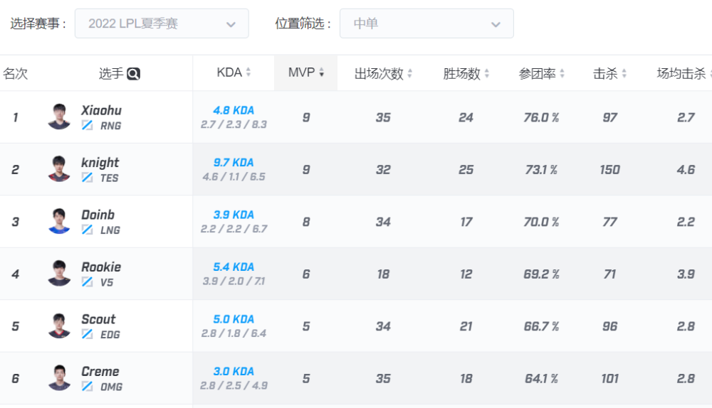另一边小明不只是夺得MVP次数最多的辅助选手,他所在的RNG战队也位居积分榜前列,大概率入选LPL常规赛第一阵容。