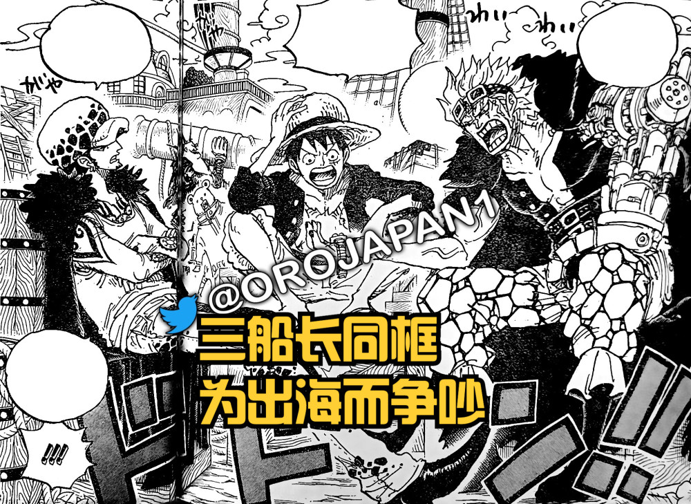 第三张情报图是三船长路飞、基德、罗再次同框的画面,同时他们还不停的争吵。其原因就是在基德手里的【航海指针】,应该是选出三个位置,然后各自出发,开始新的冒险,新的旅程。