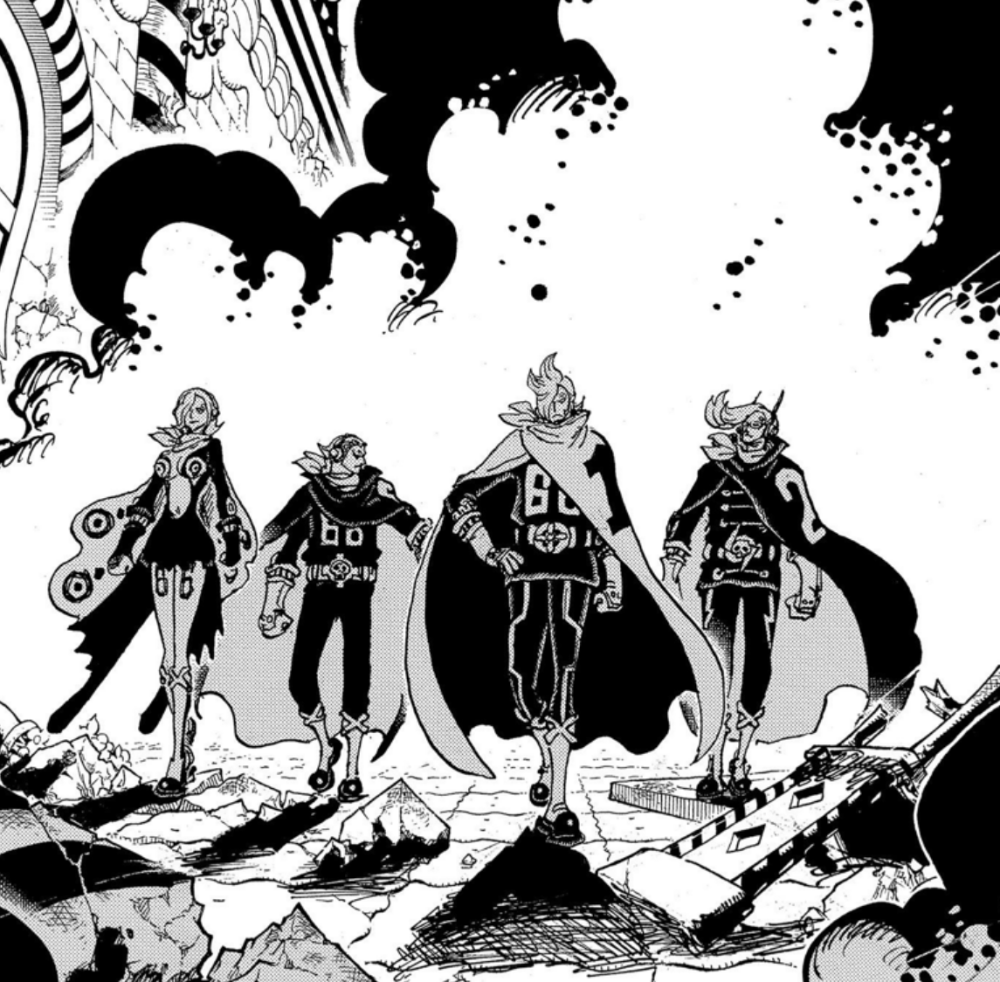 本话的扉页故事,依旧是杰尔马大闹万国。由于大妈团参与鬼岛大战的缘故,所以万国大本营中可出战的战力并不多,克力架和卡二都处于负伤状态,四皇大妈、斯慕吉、佩罗斯佩罗等人又没有回到万国,这种情况让杰尔马有资格与万国叫嚣,并且成功解除自己家族的伙伴。但这一次,他们迎来了仅次于大妈实力的卡塔库栗,已经果实能力出众的欧文。