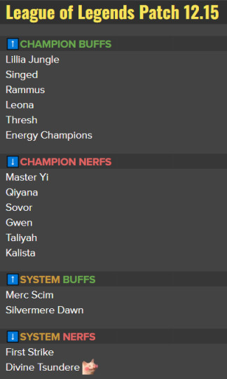 英雄增强:莉莉娅(打野)、辛吉德、拉莫斯、蕾欧娜、锤石、能量型英雄(劫、李青、阿卡丽、凯南、慎)
