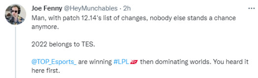 TES正在赢得LPL,然后统治世界赛。我就说到这。
