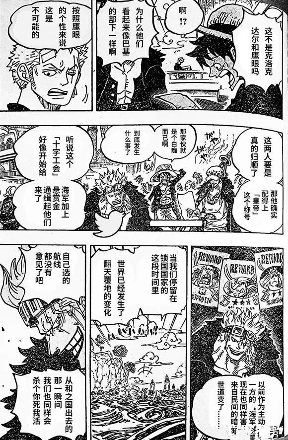 而草帽海贼团,以及红心海贼和基德海贼团已经在海上了,而且三家都选择是这一天离开和之国。不过白痴的行为方式果然一样,路飞和基德两人都选择了中间的一条路。
