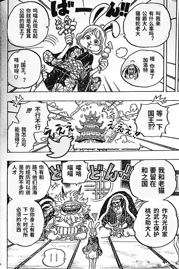 之后犬岚公爵喊来了加洛特,他和猫蝮蛇准备留在和之国,然后让他继承皮毛族国王的宝座,毕竟加洛特有和路飞一起冒险的经历,算是一个不错的人选。