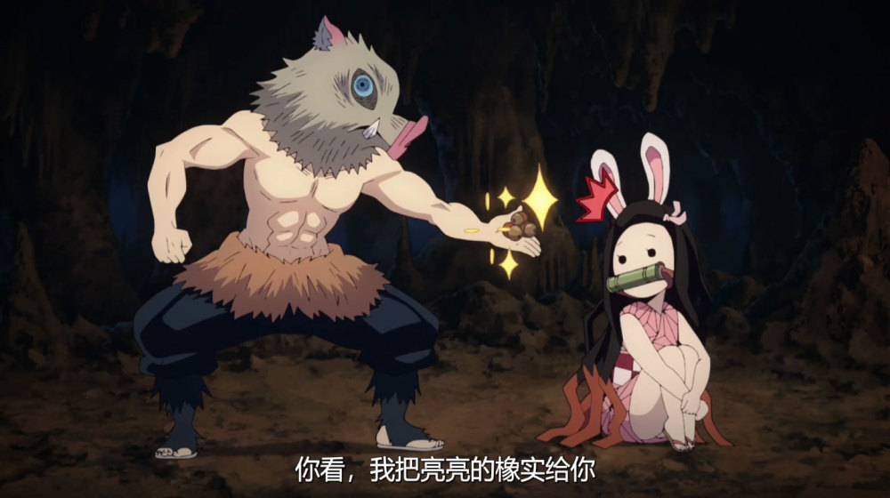 伊之助的梦境里,是身为猪老大的他,带领着他的洞窟探险队(浣熊·炭治郎、兔子·祢豆子、小鼠·善逸,共三名手下)进行探险。偶然,他的手下会出现消极怠工的情绪,这个时候,只要放出大家最爱的亮亮的橡实,就可以调动大家的积极性。