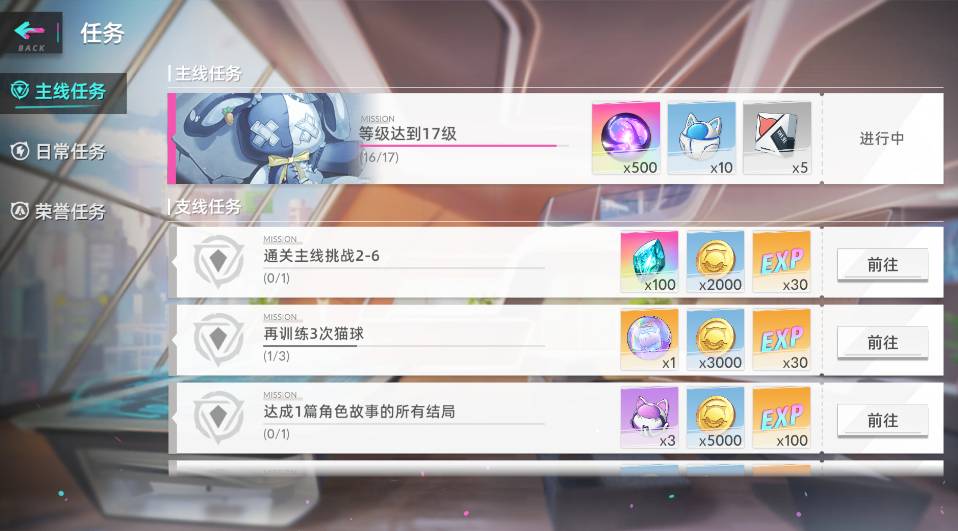1、在猫之城手游中,新手获取经验最多的地方就是任务栏,分主线任务和每天任务。