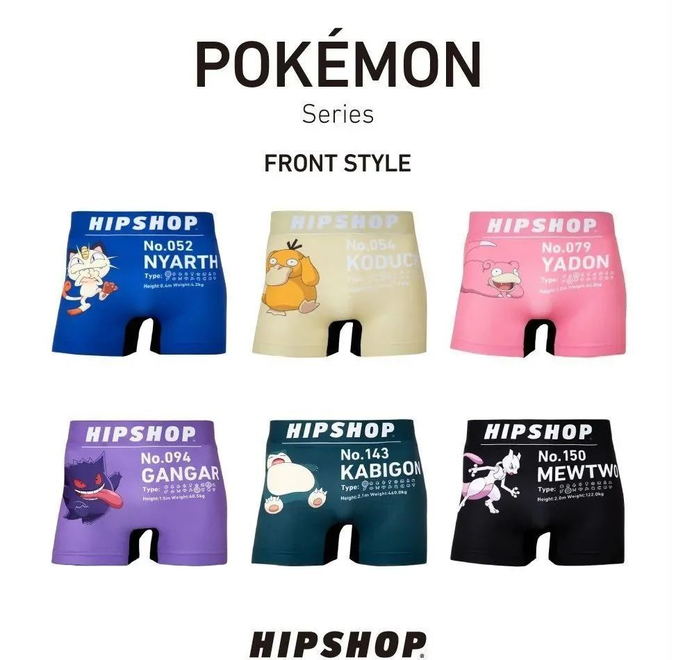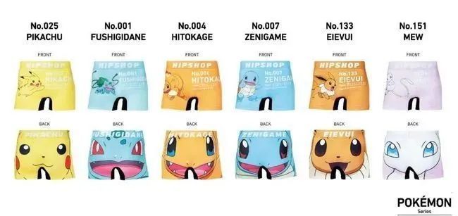 日本品牌HIPSHOP将与宝可梦联名新推出六款男士内裤。