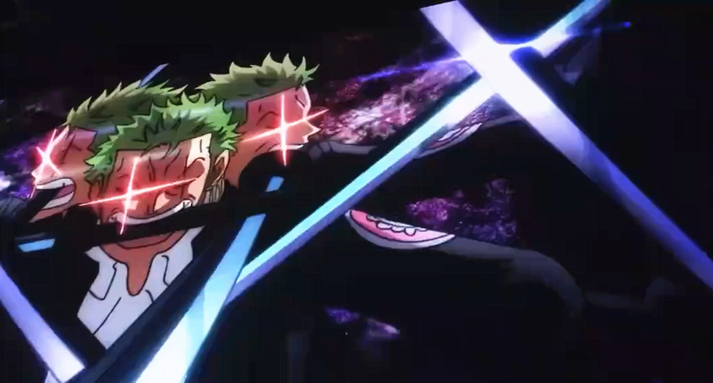 第一轮进攻的是索隆,他开启九刀流阿修罗重创恶魔的身体,打碎了许多碎片。