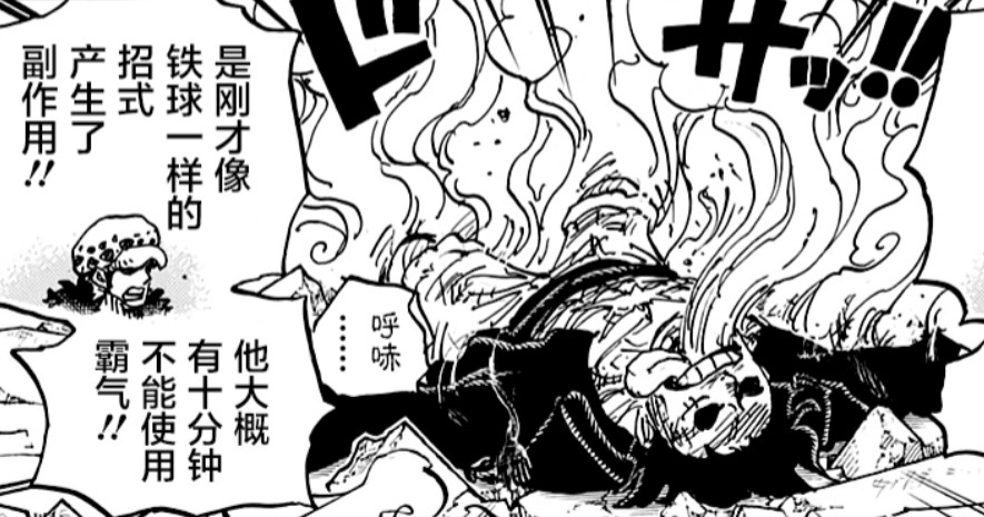 之后路飞和索隆、基德、基拉、罗五位超新星大战凯多、大妈两位四皇,在战斗的过程中,路飞使用了四档对着凯多就是一顿输出。只不过由于四档的副作用,没多久路飞自己也晕了过去,翻了白眼。