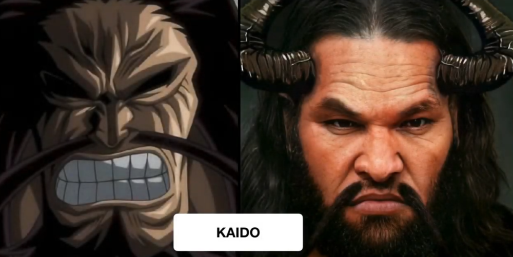 凯多是目前路飞正对战的主要BOSS,在最新漫画中他已经将路飞打到昏厥,与其他四皇一样,影响力和实力都是海上屈指可数的存在。不过到了AI还原版,却让凯多的威名瞬间不在,反而是满满的“廉价感”。头上的犄角跟“真人”完全没有贴合,简直不要太出戏,而凯多本人也没有原作中的霸气,看起来更像是一个“杂鱼”。