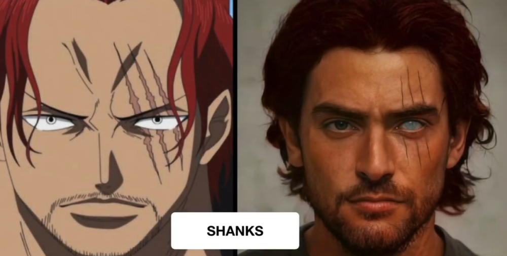 说完了白胡子老爹,再说说四皇中最具人气的红发。红发是目前最神秘的四皇,甚至比黑胡子还要神出鬼没,关于他的戏份少之又少,显然尾田老师想让其在后续篇章登场。而国外海米制作AI技术版的红发照比原作中英气了不少,不过总感觉哪里不对,难道是眼睛的部分有些出戏吗?如果真人版有红发的戏份,不如直接闭上一只眼睛,这样就不会出现跳戏的尴尬情况了。
