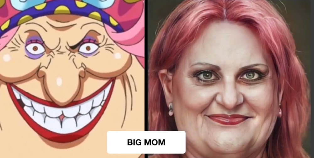 BIGMOM的威慑力及影响力是极其夸张的,天生的战斗机器,由于误入歧途而成为海贼。论天赋,大妈绝对算得上所有四皇中最豪华的,原作中的大妈无论是长相还是释放果实的场景,都给人一种十足的压迫感,令人毛骨悚然。而AI版本下的大妈还原的不错,将大妈那种表面和善实则阴险的神态表现出来,细看甚至还有些恐怖,仿佛是在暗藏杀机,当然大妈经典的多层下巴也完全还原出来,非常喜感。