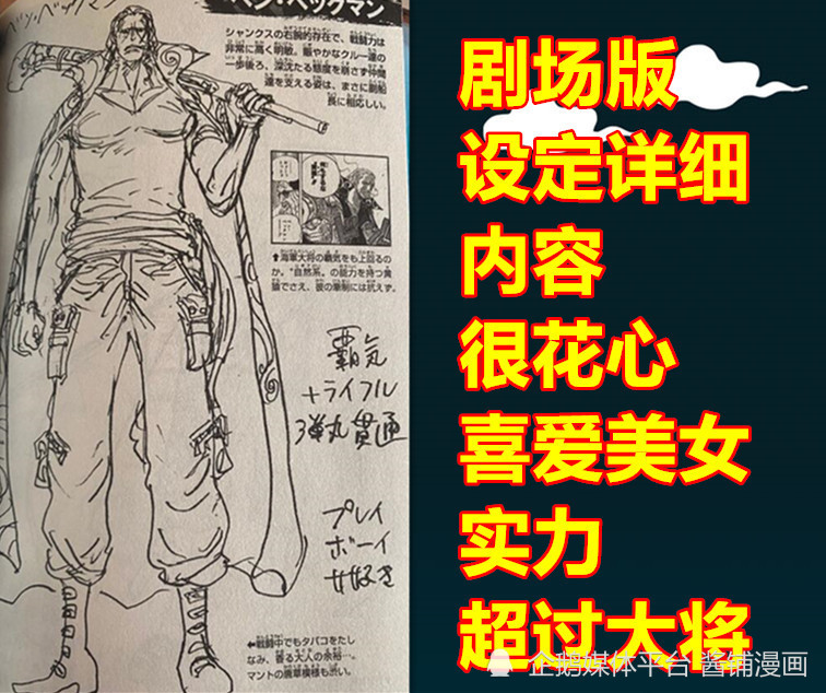 而在【贝克曼】角色的设定草稿上,贝克曼脚边有一个关键的备注,上面的作者尾田一行字非常醒目,写着【霸气+来福枪,可以弹丸贯通对手】。