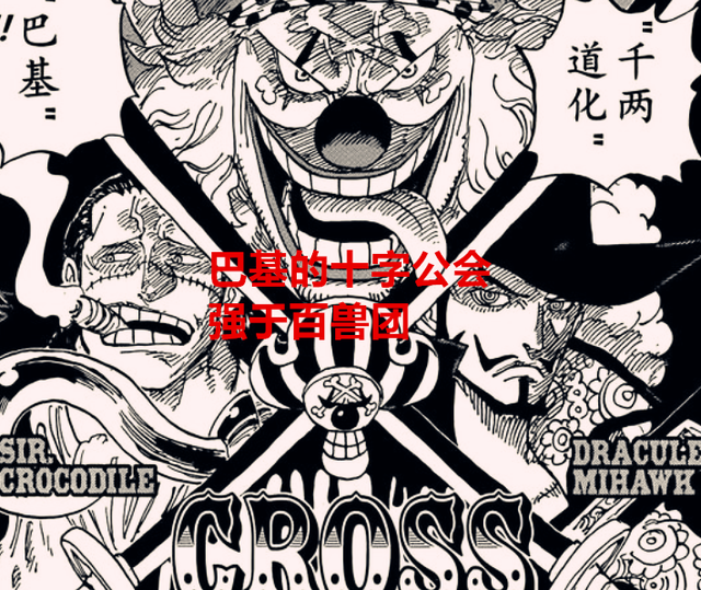 如果按照我个人的想法,巴基的十字公会是强于百兽团的,为什么呢?我们可以先看各自的兵力,巴基本人、老沙、鹰眼、三哥、一哥还有无数小兵,再来看看百兽团这边,凯多、三灾以及六子,这基本上是凯多的全部势力,但是别看凯多这边似乎很多干部,但都是虚的,三灾中的烬和奎因,都被索隆和山治解决了,而我们都知道的是,鹰眼可是索隆的师傅,既然索隆能够干掉烬,那么鹰眼秒掉奎因和烬问题不大吧?