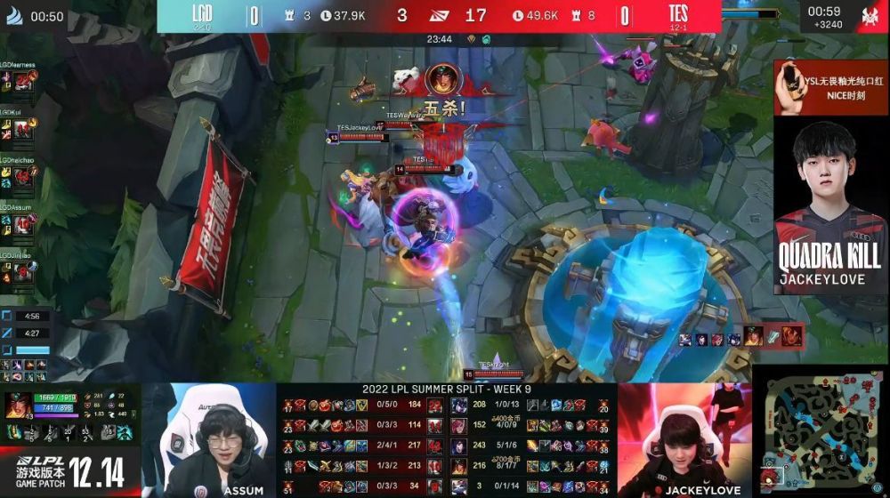 在8月5日的比赛中,第一场Bo3是由TES轻松的以2:0的比分战胜了LGD,也为队伍迎来了十三连胜,并且再次加大了自己队伍能够夺得季后赛复活甲的机会,以TES目前如此火热的状态来看,只要能在后两场的Bo3中击败V5与AL,那么TES就能以十五连胜的豪华战绩霸榜常规赛第一,不过V5作为同是LPL夏季赛前四的队伍也是不容小觑的,而在TES击败了LGD的同时,LGD也提前宣告了无缘2022LPL夏季赛季后赛。第二场Bo3是由BLG以2:0的战绩击败了OMG,在击败OMG后,BLG也再次的提升了自己队伍能够晋级到季后赛的概率。