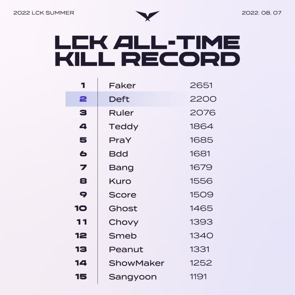 Deft LCK 2200击杀