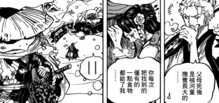 此前被凯多打成重伤的九侠就是由日和照顾,现在索隆也被凯多打成重伤,他是不是也由日和照顾呢?我想大概率就是如此,理由有二,其一山治找到索隆的时候说现在没有人有闲时间来照顾他,这就是在暗示需要一个专门的人来负责照料伤员,只有日和合适,其二日和有照顾索隆的经验,此前索隆受伤昏迷就是被日和安心照料才得以恢复。