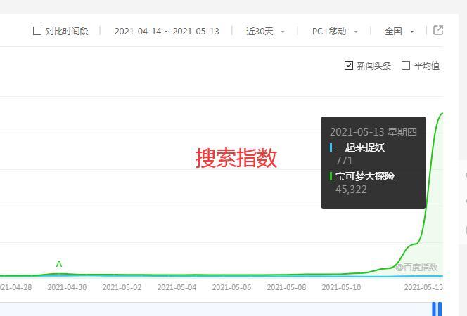 宝可梦大探险也是一款收集类游戏,和一起来捉妖有很多类似的地方,只不过这款游戏不需要外出抓妖,而是通过烹饪各种食材来吸引宝可梦。在公测之前,宝可梦大探险的搜索热度一直在2000以下,公测一天,搜索热度上涨至9000多,公测第二天已经提升到4.5万。