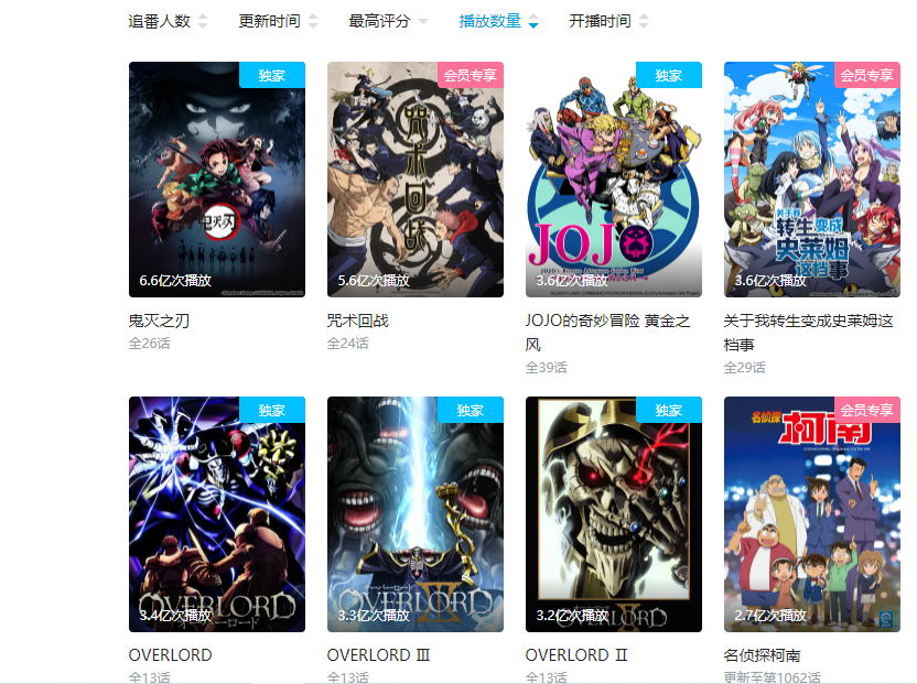这里必须提一提的便是,有这么一部作品,能在B站番剧播放量问鼎中原,总共放送了三季,这三季的播放量一直都是在B站番剧排前十,在《鬼灭之刃》、《咒术回战》等还没出现之前,《Overlord》第一的霸权可是无人可撼动的。