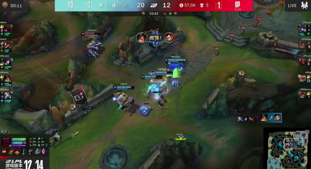 赛前谁都没想到V5和UP居然可以打得难解难分,V5虽然前不久连败导致他们丢掉了复活甲的位置,但在大多数人看来赢下UP应该还是很轻松的。只是一方面V5继续保持XLB首发,另一方面V5最近的ADC发挥不是很好。而且上中野在轮换打野的情况下也不稳定。