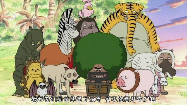 在乌索普加入路飞一伙之后,他们踏上了一个到处都是珍奇异兽的岛屿,岛上还有一个只能呆在箱子里的绿色爆炸头大叔。后来了解到大叔一个人守在这孤岛20年,直到路飞的到来,宝箱大叔拜托他们去帮自己拿下巨石上的宝藏,结果却发现,守护了20年的宝藏只是空箱子。路飞后来讲到:虽然这里的宝藏空了,但是onepiece宝藏还存在着,大叔,跟我们一起去冒险吧!最后大叔拒绝了路飞的邀请继续留在岛上守护陪伴了他20年的那些动物。