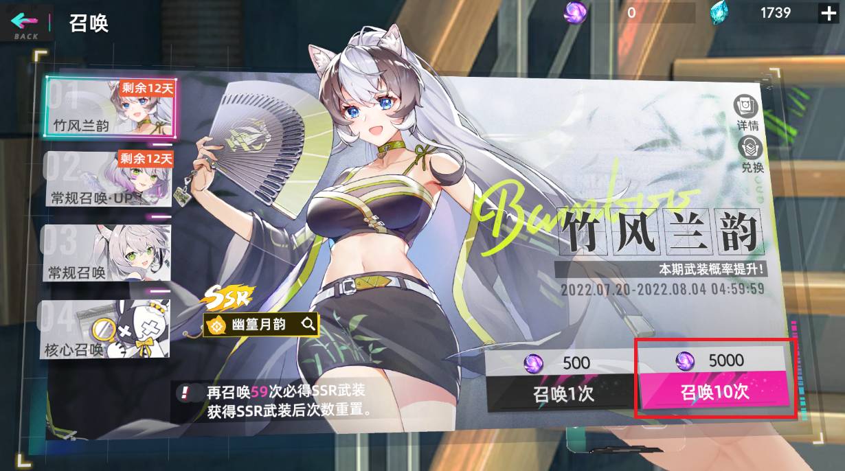 2、然后,在召唤页面中,选择限定卡池竹风兰韵。