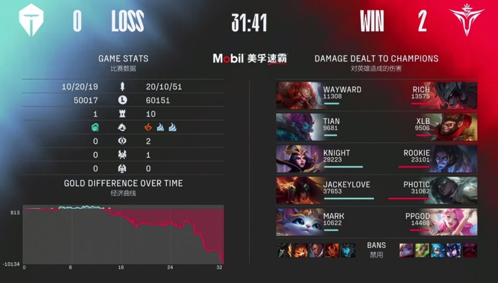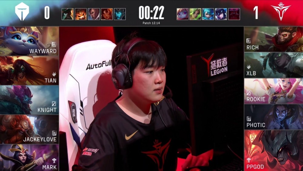 比赛初期小天再次拿下一血,是配合中路细节配合击杀了Rookie。