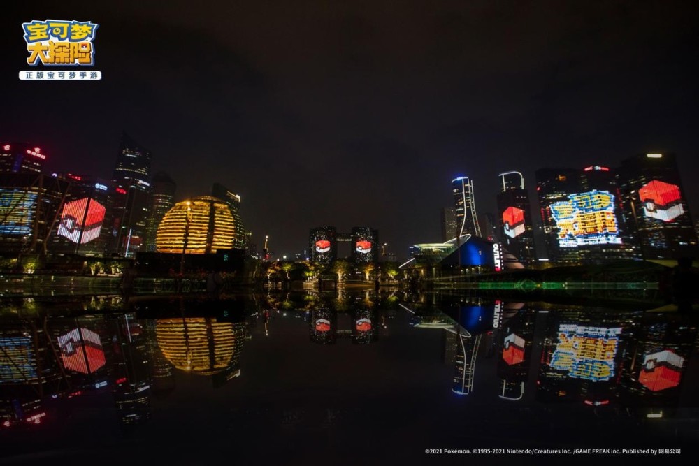 原来为了庆祝《宝可梦大探险》的火热上线,网易开启了一系列的线下活动。首先网易壕气的在钱江新城搞了一个宝可梦主题灯光秀,众多玩家冒雨围观,场面十分火爆。活动当晚,杭州钱江新城长达2.3公里的灯光秀场上浮现了宝可梦的巨大身影,谁看了不说一句壮观!