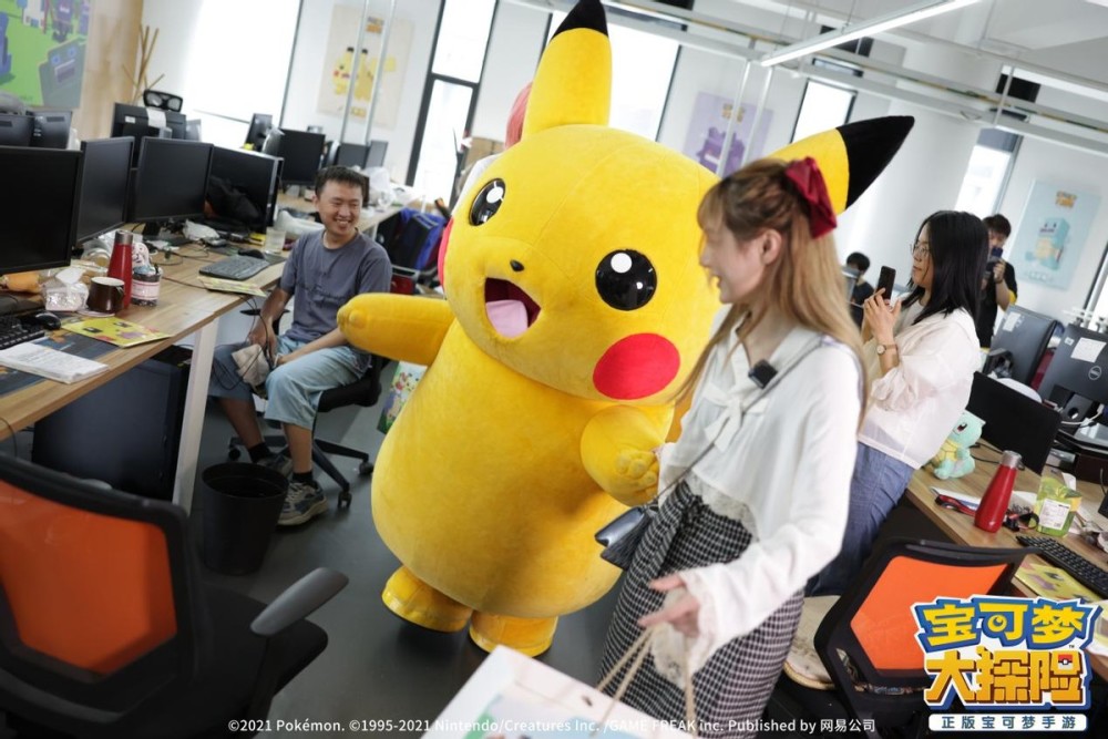 随后,宝可梦出现在了网易园区。没错,宝可梦是来上班的。刚在灯光秀营业结束,立刻就到网易报道入职,今年的敬业福一定是宝可梦的!不过,宝可梦必不是孤军奋战,与宝可梦一起的还有火箭队、小智小霞~coser小哥哥小姐姐们也十分敬业,努力为大家还原宝可梦里的形象,可以跟童年玩伴来一个亲密接触,在场的小伙伴都十分的感动。