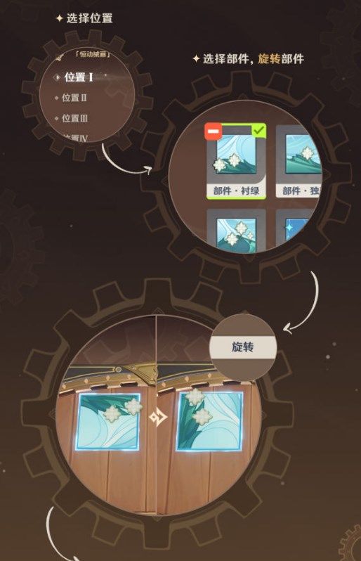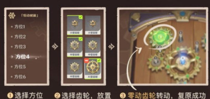 ·在复原「械画部件」的过程中,旅行者需要合理使用各类齿轮零件,使齿轮互相接合并驱动零动齿轮运转;