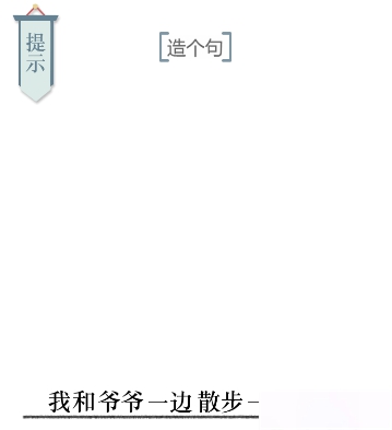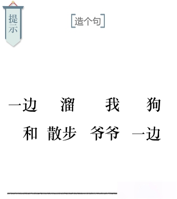3、组成“我和爷爷一边散步一边遛狗”,就可以通关了。