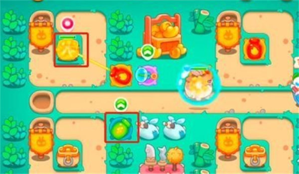 3.第三步,下面的曲子开始出来,在下排设置新的炮塔,兔子快清完的时候开始让炮塔清理其他物品。