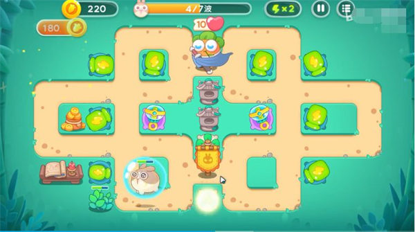3、泡泡塔也要升最高级,本关只有这两个泡泡塔能有减速效果。