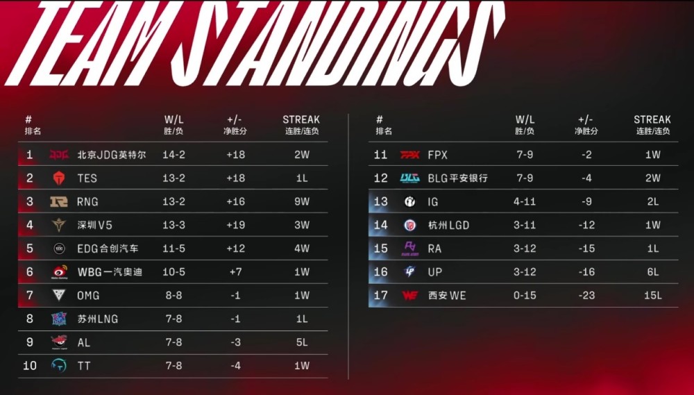 LPL夏季赛常规赛的比赛很快就要结束了,在最后一个阶段主要的看点就是前三名的座次排位还有就是后面TT,FPX,BLG以及AL等战队到底谁能够进入季后赛。RNG方面,在JDG已经结束所有比赛后,RNG需要确保最后一局打出2-0的比分,就能锁定一个复活甲。