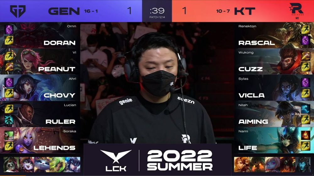 在今天GEN.G对阵KT的第三局比赛中,KT下路Aiming选取了尼菈,这也是尼菈首次登上LCK赛场。