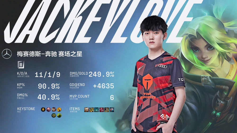 这一波团打完,也基本上代表着游戏结束了,在TES滚起雪球之后,下路直接打出一波团灭,最终拿下了第一场比赛。左手也斩获了这一场比赛的MVP,现在左手有着十个MVP在手,是有很大概率可以拿到最终的常规赛MVP,以及一阵中单的。