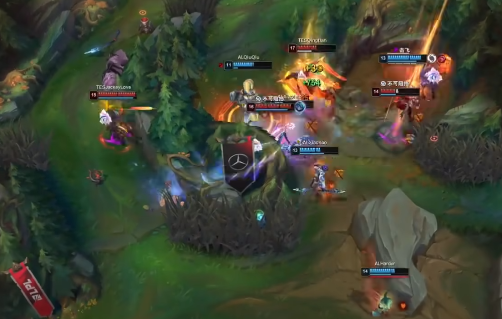 很快,跟AL的比赛也拉开了帷幕,晴天在第一场比赛当中,选出了剑魔这个英雄,这也是他的拿手绝活了。他对线zdz的时候,表现得还是相当不错的,这一场比赛属于一点小碾压了,中期在中路的那一波团战里面,晴天剑魔传送下来,顶住了对方后排很多的输出,让自己这边的双C打出了爆炸输出。最经典的当属晴天这一刀,直接打了对面AD一半的血,视觉效果爆炸呀!最终左手拿下三杀,这一波团战结束。
