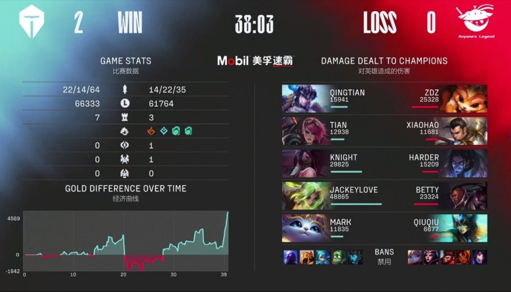 逆境局面下TES战队是直接中路一波小天先手开团打出团战胜利后一波结束比赛,迟来的LPL常规赛第一,同时还送BLG进入季后赛。