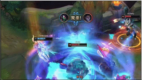 13分钟AL下路先手抓Vi的机会打残,小天反手开配合下路双大招反杀,JKL一波双杀起飞。