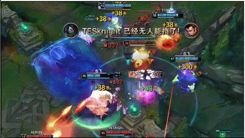 本以为局势要向着TES获胜的方向稳定走下去了,没想到之后中路的一波团战,TES先手塞拉斯打残后猪妹大招没打中,Knight进场脱节,被Zdz纳尔后手进场拍两个配合娜美水泡,AL这一波直接打出2换5团灭。
